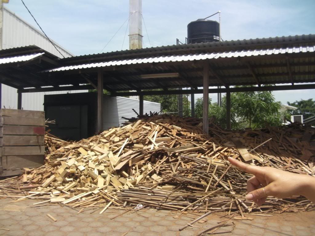 Here is an additional picture of the scrap wood and a view of the six closed drying ovens, which are often rented by other woodworking companies to dry their wood, since nobody else in Nicaragua has the drying capacity of Simplemente Madera.