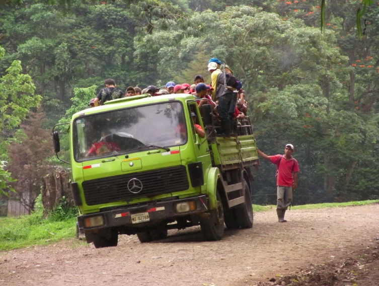 We drove up to a plot where workers were digging holes for a resiembra, a “replanting” (really a replacing) of last year’s hybrid coffee that didn’t take well to the soil. The holes were dug where a dead or dying plant was uprooted. These floundering plants had crumpled leaves, undeveloped roots, and stunted trunks. One of the reasons the replanting was so necessary was that the specific plot we visited was very flat, so that even the ditches dug between rows couldn’t keep the mud from drowning the plants. Shade, moisture, and altitude are the three key elements of coffee growth, and they must be regulated when possible to achieve full potential. Multiple species of tree are planted through the coffee rows to provide shade and cultivate more than one crop per plot—mahogany, Platymiscium pinnatum (known here as coyote but internationally as granadilla, among dozens of other names), oaks, cedars, teaks, and others can be found amongst the coffee. Banana trees are also used for shading and additional harvest.