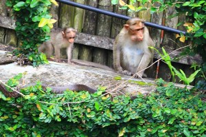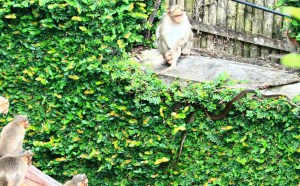 A couple of days ago, Michael wrote the post “Monkey Business…”. The post illustrated my surprise seeing 20-ish monkeys, which to Michael was not an unusual event. Over the last week I too realized that a sudden appearance of the Macaque was just a part of daily life here. However, I definitely enjoyed my first encounter of a Macaque family outing. I hope you enjoyed as well.