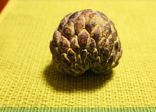 Shortly after the explosion of plums at the market I came across something I’d never seen before: a mound of rather ugly, squat, greenish pinecone looking things about the size of a small fist. I was intrigued. I picked one up tentatively, not certain of its firmness, and held it out to the shop keeper., asking, “What is this?” She repeated something several times, without my understanding her words. Finally I turned to another customer and held it out. “That’s a Custard Apple,” they said. I’d never heard of it, so couldn’t tell whether the one I was holding was ripe or not. Another person lifted one up and showed me a ripe one and how to open it and eat it. I picked out 4 and brought them home, where they sat like squat little creatures on the table, waiting to be examined and shared with my family.