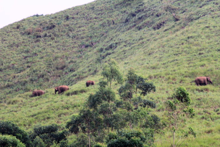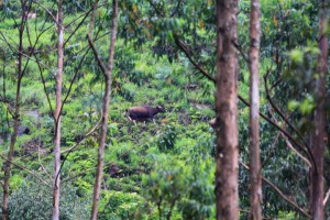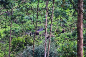 After paying the park entrance fee, we continued on the road deep into the reserve towards Green Mansion where the activities begin. Within about 10 minutes driving on the Periyar road, we had our first wild animal sighting– elephants! Seeing elephants was very exciting but very sad at the same time. Michael, the first of three interns at Cardamom County and the creator of this WordPress site left Kumily on that same morning on the first stage of his long trip home. During his two month stay he’d been on numerous treks in the reserve but he never got to see an elephant, and within an hour into our excursion we got to see a small herd! It really drove home the fact that wildlife sighting is really a matter of luck. But that phrase should be viewed in two ways; it’s not just the luck of being in the right place at the right time, but also anyone who has the opportunity to spend time in a wild, natural environment should consider themselves lucky indeed, whether they have the good fortune of sightings or not.