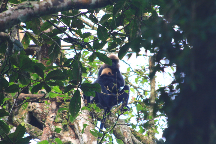 We also sighted Nilgiri Langurs, which have starred in several earlier posts: Unexpected Visitors, (Un)expected Visitors, Redux). Even after having seem them at the property, a rare occurrence despite those posts, this time we were able to see a baby Nilgiri Langur–a very special sighting indeed, as they are usually very high up in the trees!