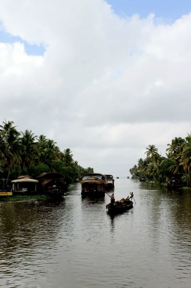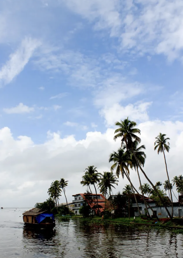 Two Kerala cloud fronts prepare to collide over a strip of land bearing a bounty of coconuts in the Backwaters district of Alappuzha.