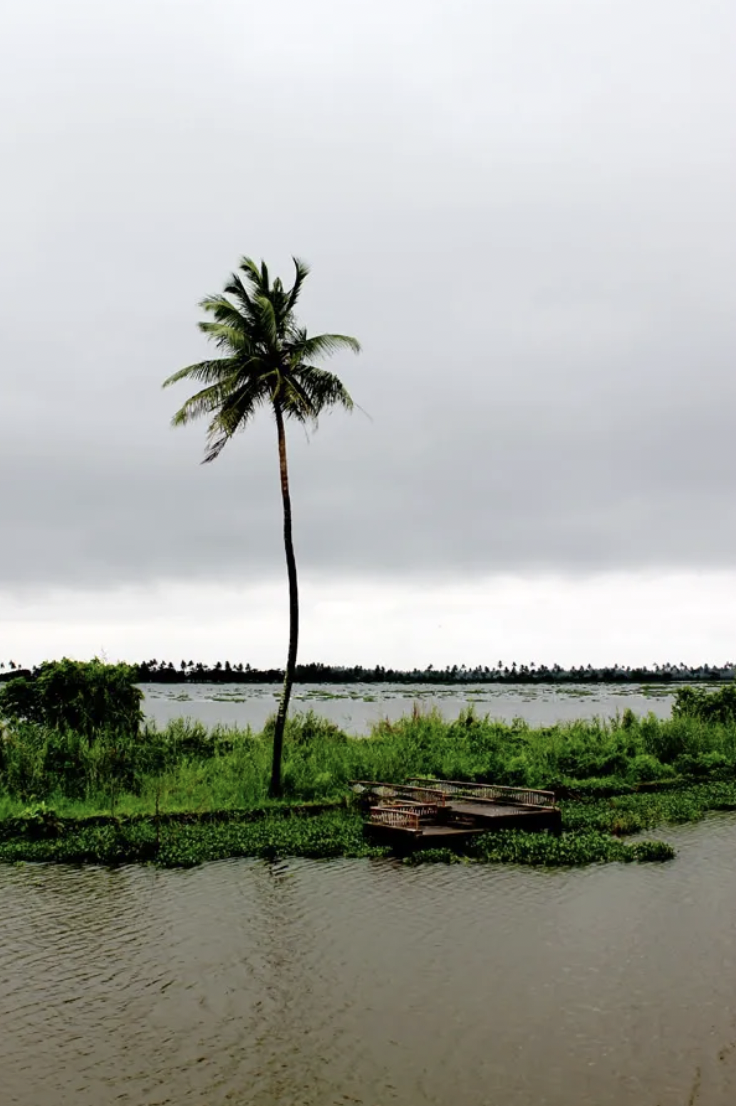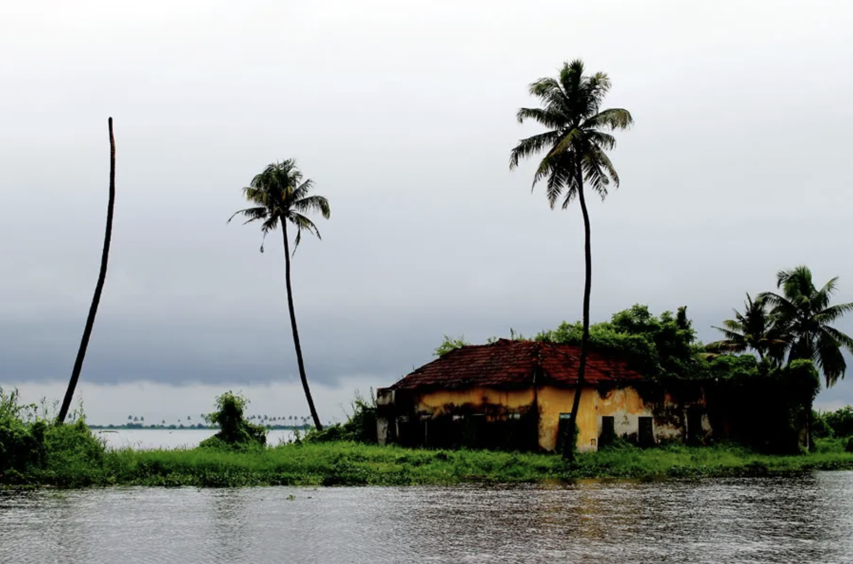 Alleppey’s riverbanks are full of life and color; on this one, a brightly painted building is slowly being colonized by creeping vines