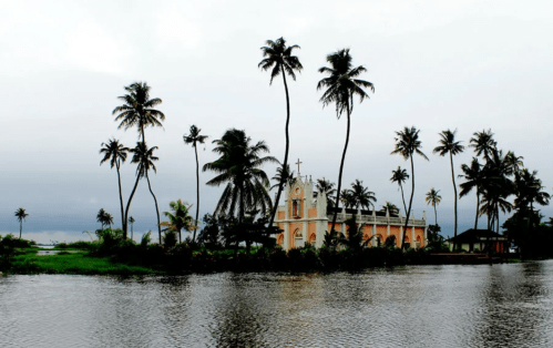 Logistics? Construction materials are transported along the river channels by boat to allow for large buildings such as this church to be built.