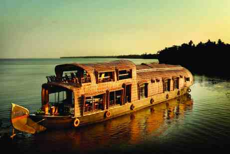 The local name for the houseboat is kettuvalam (kettu meaning “tie” in Malayalam and valam meaning “boat”). This name is derived from the pre-industrial method of building the boats, which made use of coconut fiber rope, called “coir,” to tie together the planks in a way that creates an almost seamless exterior. The fused planks and rope would then be fortified with fish oil for durability and water resistance. The frame was traditionally built of Jack wood and the roof of bamboo.