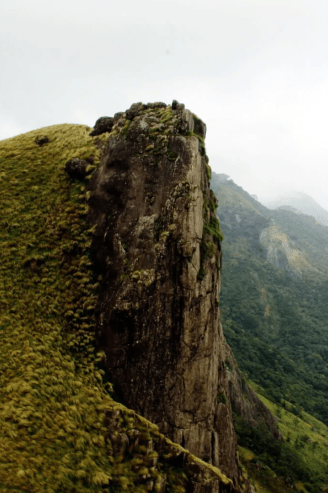 A sheer cliff face of at least 50 meters on the Tamil Nadu border, at an altititude of over 6000 feet.