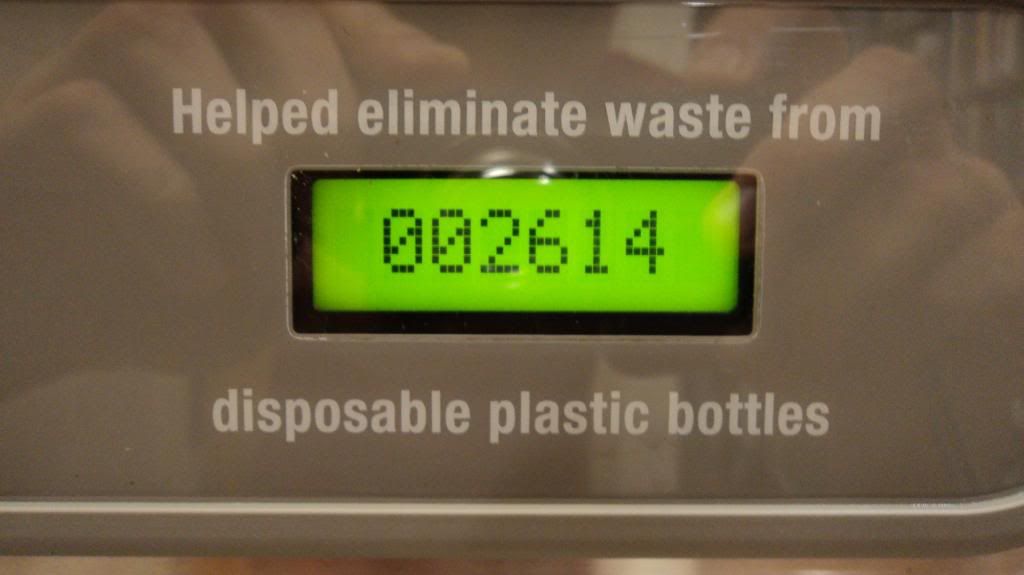I’ve been carrying around aluminum or hard plastic bottles for years, and am always annoyed when I have to replenish from a water fountain that doesn’t shoot water in a high enough arc so that my bottle can fill to the brim. With the EZH2O, all you have to do is place a bottle in front of the motion sensor in the back panel, or simply stand it on the grey plastic platform, and water will come down in a straight and soft stream.