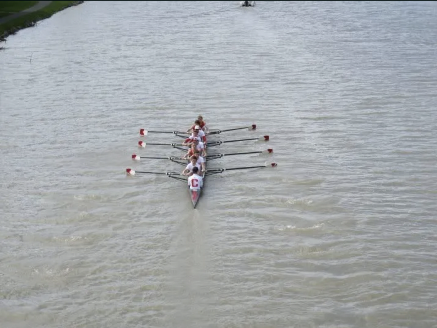 On clear afternoons during the week we’d watch the light change in the other direction: the sun’s deep orange glow would cast rich reflections on the water, and as clouds gathered the moon would start to rise towards Cornell’s famous clock tower in a scene almost too picturesque to be believed. On these afternoons, Monday through Friday, it was almost possible to imagine that we were a part of the lake; eight oars pushing through molten lava and dripping gold as we sped through the fiery waters to the coxswain’s called commands, which mingled with the cries of geese coming and going.