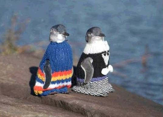 Looks like penguins are the new chihuahua. Actually, it is pretty amazing that the knitting community responded so well and so forcefully. Very impressive. Some of those jumpers are very cute.