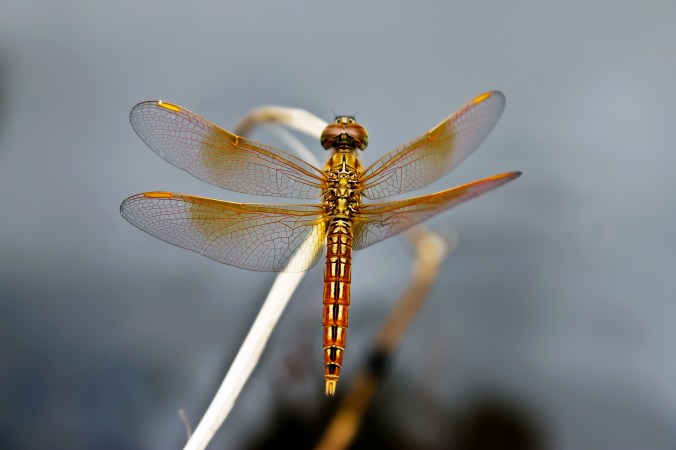 from a distance, but up close the differences are evident. The eyes’ and body’s colors are not as significant as you’d think, as odonates are prone to drastically changing colors as they age – the key identifying feature is the wings. In males, the wings are toned a rich amber – in females, the color is slightly more yellow. However, the wing spots (at the top of each wing there is a single segment that is tinted differently from the rest of the wing) of the male are red, whereas the female’s are yellow.
