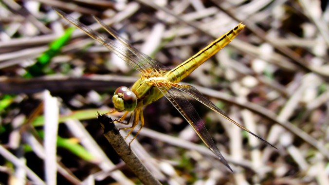 One of the fastest and most agile dragonflies I’ve seen, this red male was sighted on a riverbank in Alleppey, Kerala. Although not unusually large, this insect stands out due to its bright red body and head. Most of the red dragonflies I have seen (in the genus Orthetrum for the most part) have some combination of colors – azure eyes, black face, blue thorax and red abdomen (O. pruinosum); black eyes, red face, brown thorax and red abdomen (O. chrysis), etc.