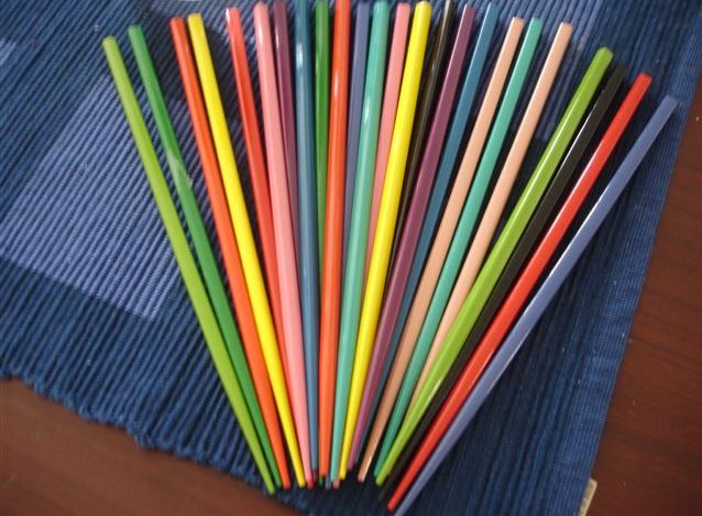 When I began pulling items from the package and saw the a clear flat plastic box of color my first thought was that I hadn’t asked for colored pencils, but they would come in handy. Then I realized they were my chopsticks! Mix and match, delicious colors filling me with the familiar sense of well-being of a brand new box of crayons.