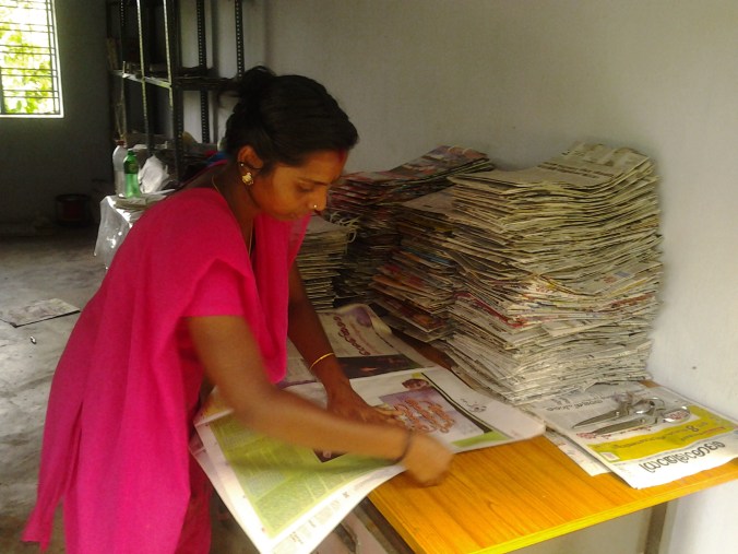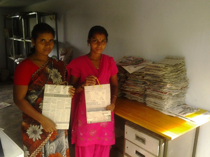 The Mannakkudy EDC is comprised of 3 ladies working full time on the newspaper bags project. They makes around 60 first quality bags per day. The ladies from both Vanasree and Mannakkudy are very much optimistic about the ongoing success of the initiative. They are providing these first quality bags to nearby shops and Raxa Collective Cardamom County as well as already sending close to 2,000 Methiyadi bags and Biriyani Bags to supply clients PaperTrail in Cochin. They are confident that they will be able to keep up with the growing demand. I am also sure that more and more ladies will be attracted into this venture after observing group’s successful economic gain.