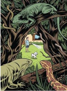 Click the image to go to the article, which examines what happens when exotic animals are bought as pets, then released into ecosystems where they have no predators or other population-regulating mechanisms. Yikes: