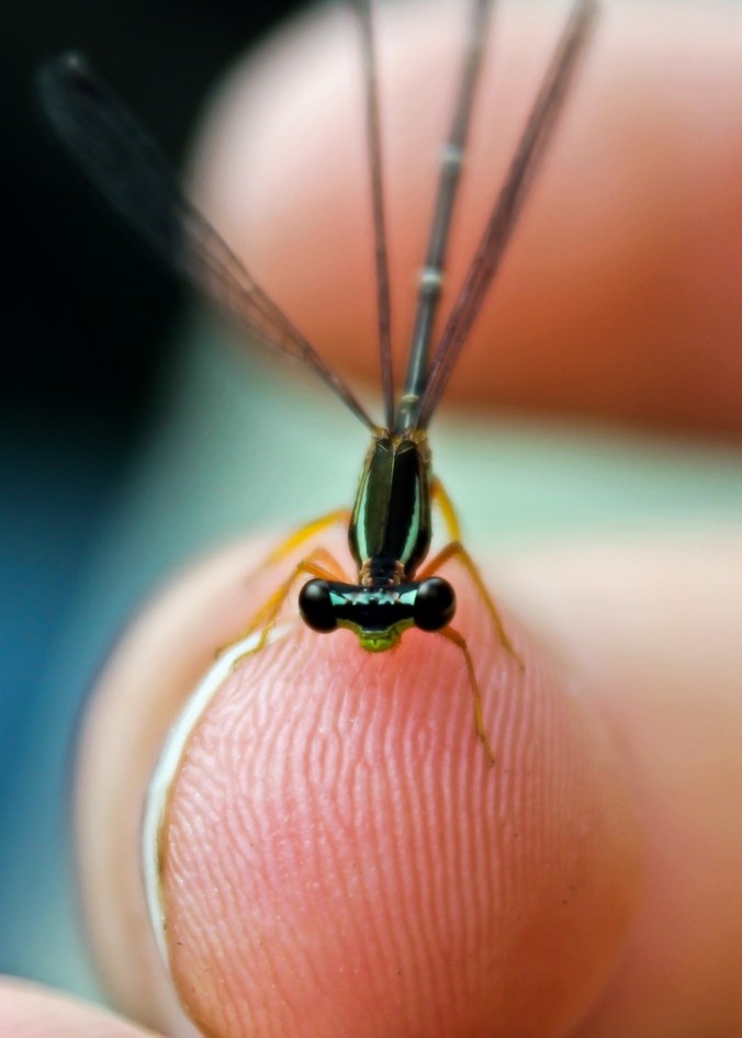 The male on my hand was photographed immediately after rescuing it from a spider’s web. I was actually leaning over a pond’s edge to get shots of a water lily when I noticed him struggling to free himself from the sticky thread. I didn’t even see the spider in sight and there were mosquitoes biting me. As they say… release the dragon!