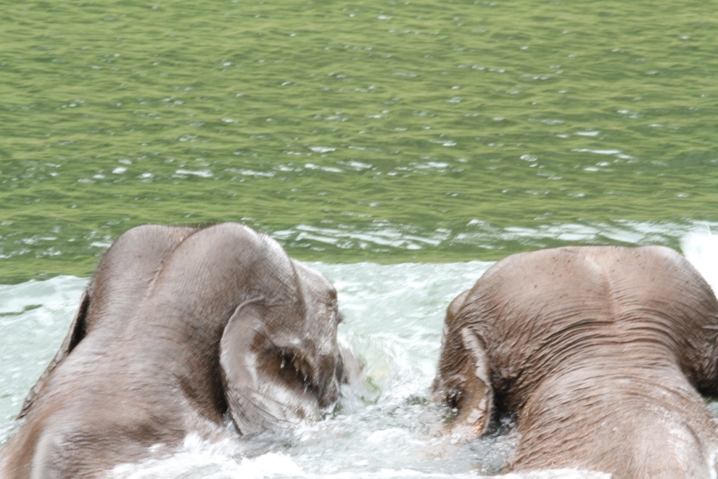 Elephants are very social, frequently touching and caressing one another and entwining their trunks. Elephants express their emotions in many different ways. They show great joy for the following reasons: in the greeting of a friend or family member (even a human friend), after the birth of a baby elephant and when playing games.