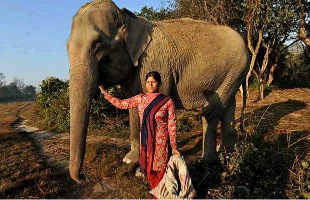 Meena Chaudhary was chosen from among numerous female candidates to be the first of hopefully many female mahouts to lead elephant safaris in Nepal’s Chitwan national park. Part of her training included climbing trees and swimming, further examples of breaking molds.