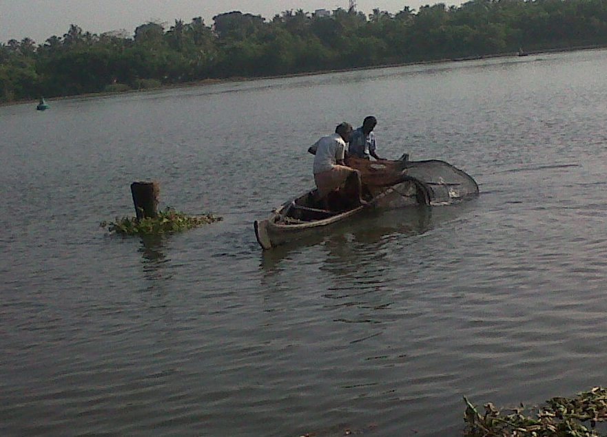 Any given morning in the neighborhood called Thevara, where we have some wonderful friends, the fishermen do their thing a few meters from the riverfront walkway. To call that cooperation is like calling the kettle black. But just as we found this explanation of man-animal cooperation fascinating, this morning’s mobile phone snapshots got interesting.