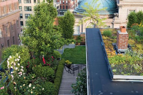 At the South Street Seaport, Manhattan, I was passing by a building that had a rooftop garden, which is clearly a trend now in NYC. People might have avoided creating a rooftop garden in the old days because they thought that the construction cost was high or adding such a roof on an architectural structure was complicated or cause damage to the building. Now, everything is changed – there are so many different structural and landscaping materials that allow us to efficiently build a workable garden on your roof! (I know this because I’m currently taking a landscaping class at Cornell and because our semester-long project is to design a rooftop garden.)