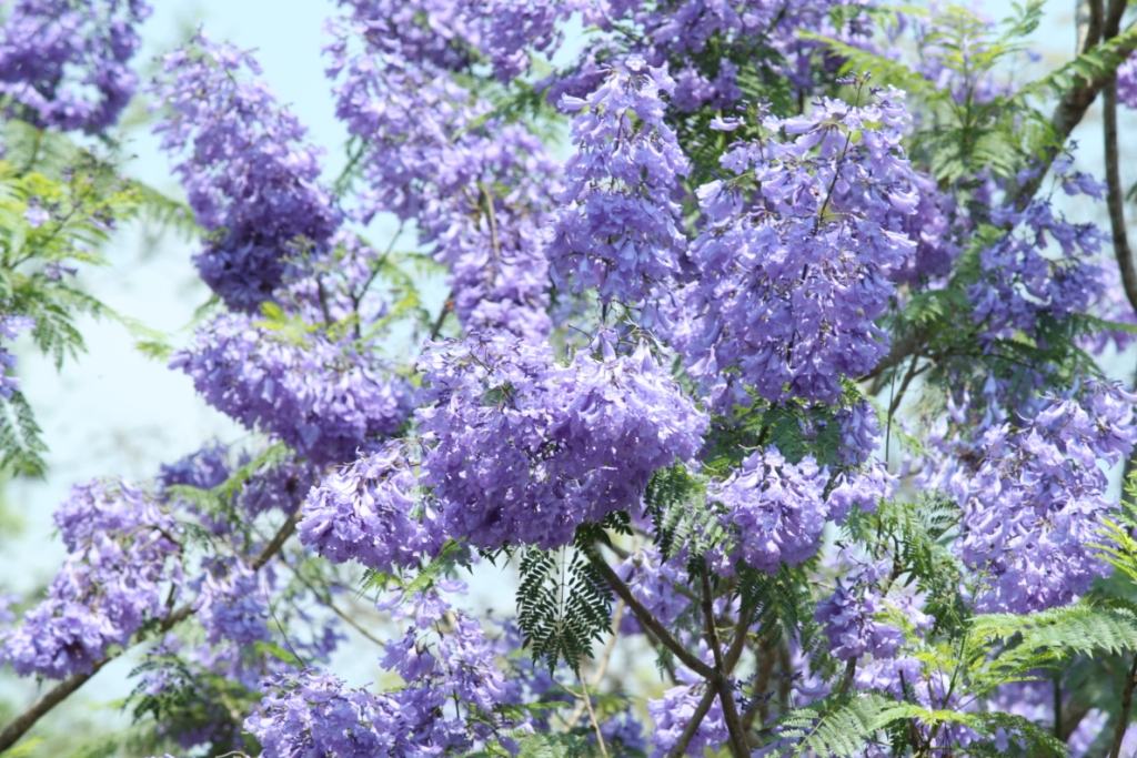 Native to the New World Tropics, the Jacaranda (Jacaranda mimosifolia) is an ornamental tree that grows up to 18 meters. The tree is renowned for its clusters of fragrant purple trumpet shaped blossoms that bloom from March to May.