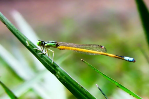 The Golden Dartlet, or Iscnura aurora, is a small species of damselfly that resides in the general vicinity of small streams and ponds. The above photograph was taken several hundred meters from any sizable body of water – a testament to the creature’s rugged and functional, yet beautiful design.