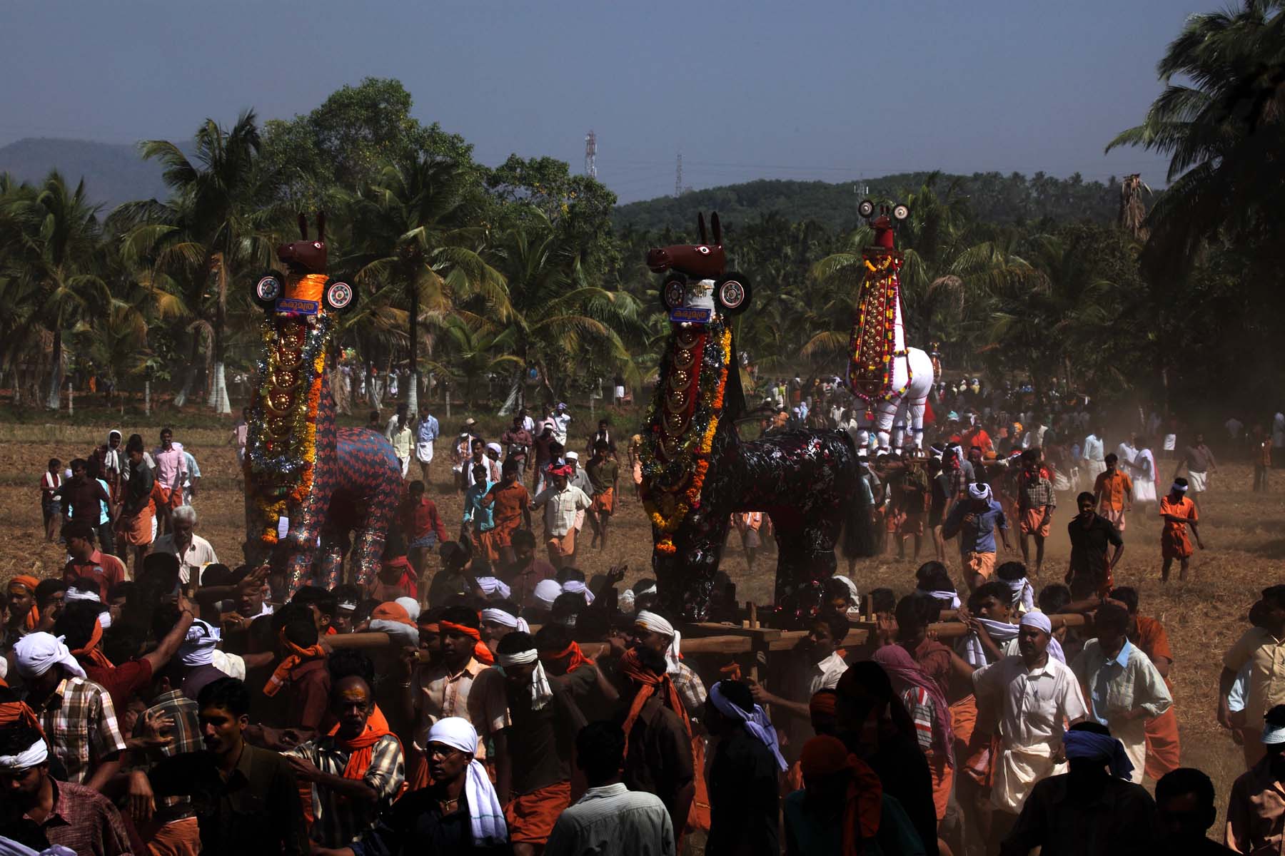 Unlike other temple festivals in Kerala where caparisoned elephants are the main attraction, the Machad Mamangam is celebrated with huge models of caparisoned horses. Five villages in the general area of the temple participate in the festival in a competitive but spiritual way. These huge horses are carried by the youth of their respective villages to the temple.