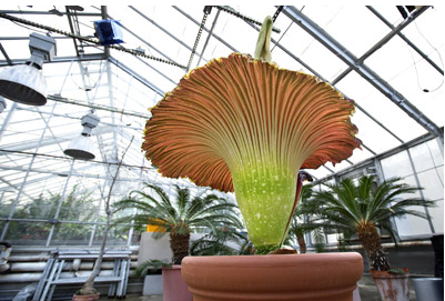 Last month I excitedly wrote about the soon-to-bloom Titan arum at Cornell University in a series of posts: here, here and here. I think I even made the promise not to subject our readers to more on the theme. But bear with me. One last post. Really…