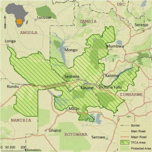 Five nations that form the central heart of the continent, Namibia, Zambia, Zimbabwe, Angola and Botswana recently signed the final documents to create an enormous conservation zone that encompasses 170,000 sq. miles (44,000 sq. kilometers) or 109 million acres. Altogether, the Kavango Zambezi Transfrontier Conservation Area (KAZA) or KAZA Peace Park, will include 36 game reserves, numerous national parks, forest reserves, conservancies, game and wildlife management areas and communal lands.