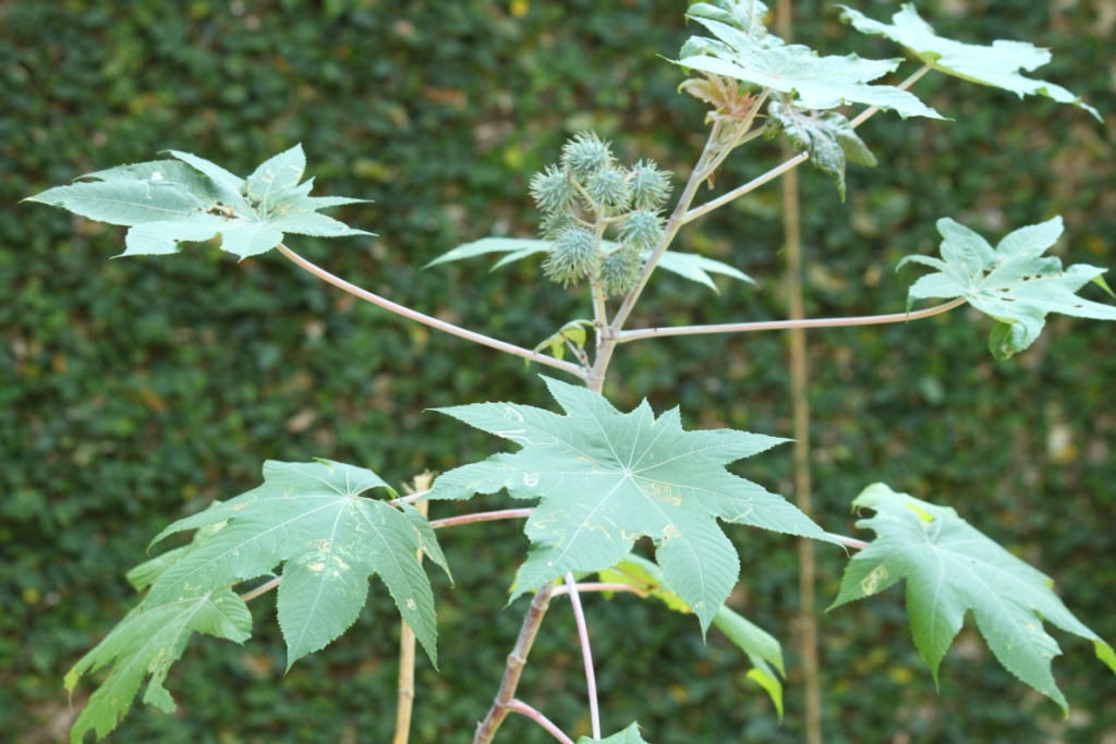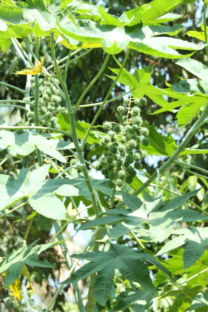 The Castor plant is a very strong, sturdy plant growing throughout tropical regions, common along stream banks, riverbeds, bottomlands and any hot area where the soil is well drained. This fast growing plant grows to a height of 6-15 feet in one season and can reach the height of 39 feet. It can live for many years in mild climates, and can become quite woody, like trees.