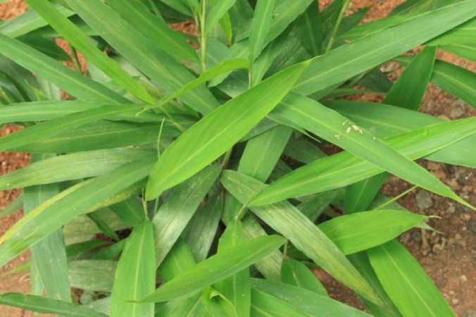 This perennial tropical plant with an aromatic rhizome grows up to 5-6 feet tall. The plant belongs to the ginger family where the rhizomes are used for medicinal purpose. It has oblong, smooth leaves and fragrant, greenish white flowers.
