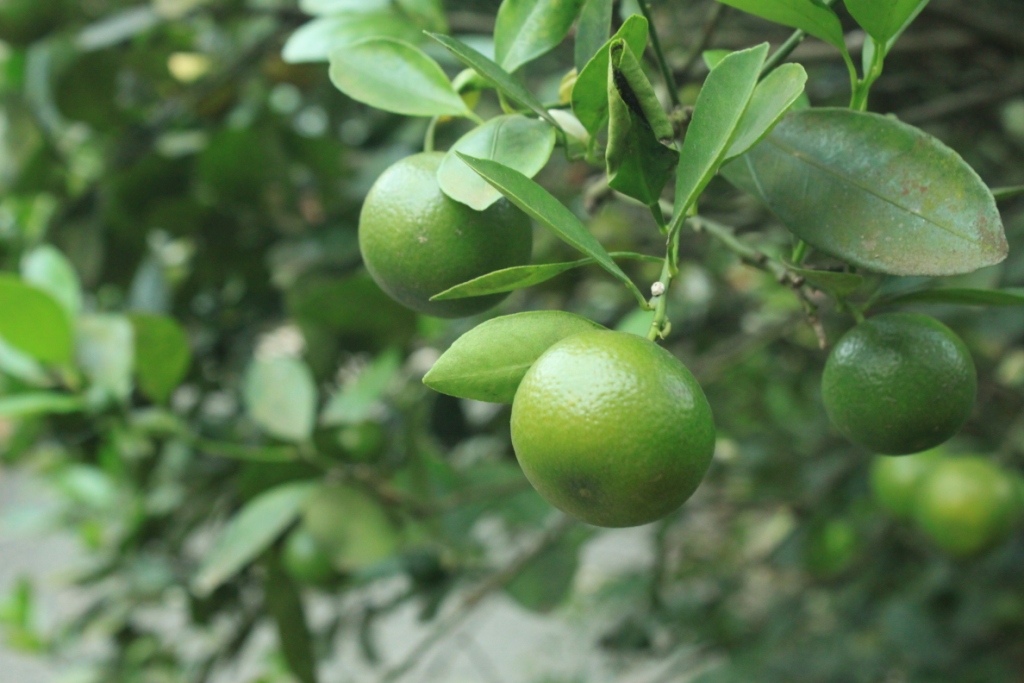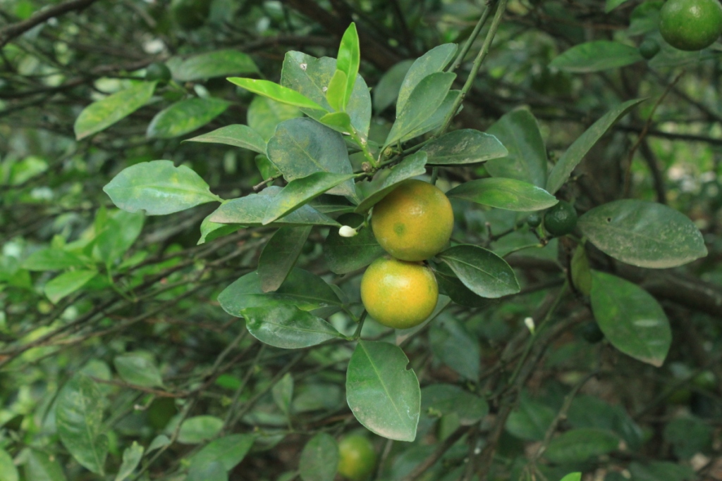 The flowers are white and fragrant, growing in a cluster at the tip of the branches. As the flowers wither, the stigma remains which grows into the orange fruit. The fruit is commonly peeled and eaten fresh and often squeezed for its juice.