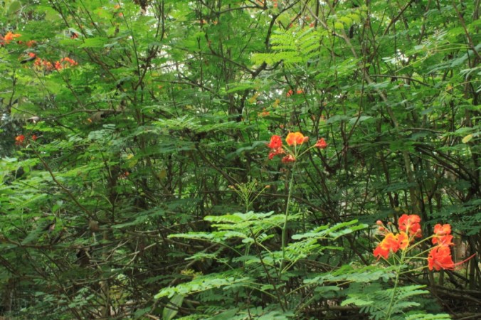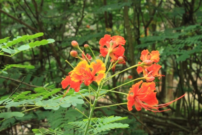 The Peacock flower is a tropical to sub-tropical plant found commonly in the Western Ghats of India. It has a lot of similarities with the Gulmohar tree and hence one can often mistakenly identify one for the other.