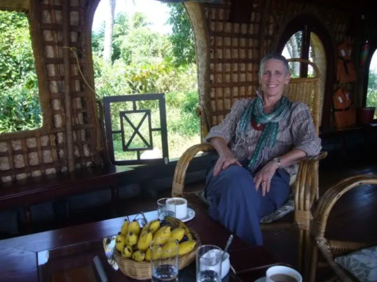 Having been a chef on the high seas myself, a highlight for me was following the chef to the galley as he prepared our lunch. (At the end of this blog, I’ve included some of the culinary tips I learned and have repeated, with great success, at home.) The chef, a tall, slender man in a clean white chef’s coat and tall toque (making him all the more imposing in height) was shy but friendly, explaining his preparations as he skillfully cooked with a deliberateness that conveyed training and personal pride. Our fish, a favorite on the Kerala backwaters called Pearl Spot or Karimeen, was trippy looking, resembling more of a skeleton than an edible item, but it was delicious – crunchy and spicy. As the chef cooked, the captain remained attentive at the helm, navigating through the waterways that would eventually (for someone else) lead to the Arabian Sea. And we were not alone. There were dozens of other houseboats meandering their way down the river – some had two levels with expansive balconies while others stood out with ornate window frames and decorative wood designs. And we all just moseyed along, with passengers waving to one another as we passed modest homes on the shore with clotheslines holding colorful saris. As the waterway became narrower, we found ourselves being led off the houseboat and into a long motorized canoe. We had arrived at the backwaters.
