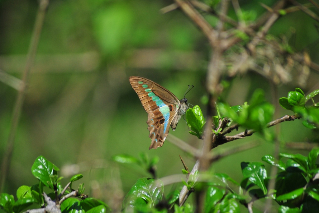It can be easily identified by its swift, skipping motion flight pattern that flashes its blue-green colors and when it feeds at muddy, damp patches along with other butterflies. I took this photo inside the Periyar Tiger Reserve.