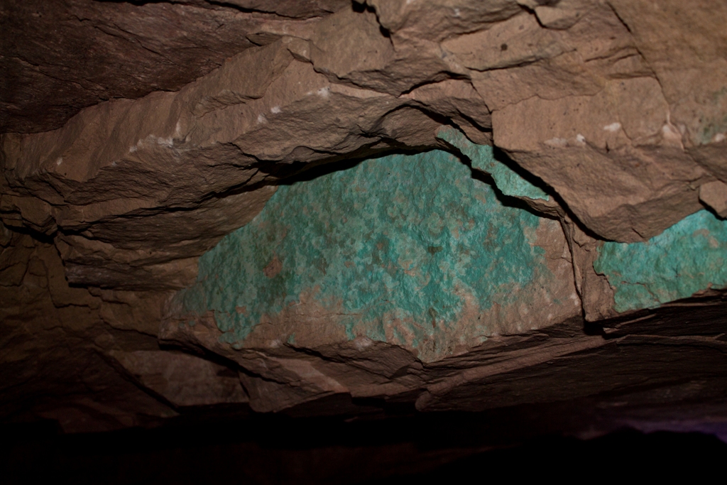 extraction of enormous amounts of copper ore – backbreaking labor in deep, dark mine shafts throughout the area’s valleys. The copper ore these slave laborers extracted was impure – merely pieces of rock which contained traces of copper, detectable due to the characteristic blue-green oxidation of the metal.