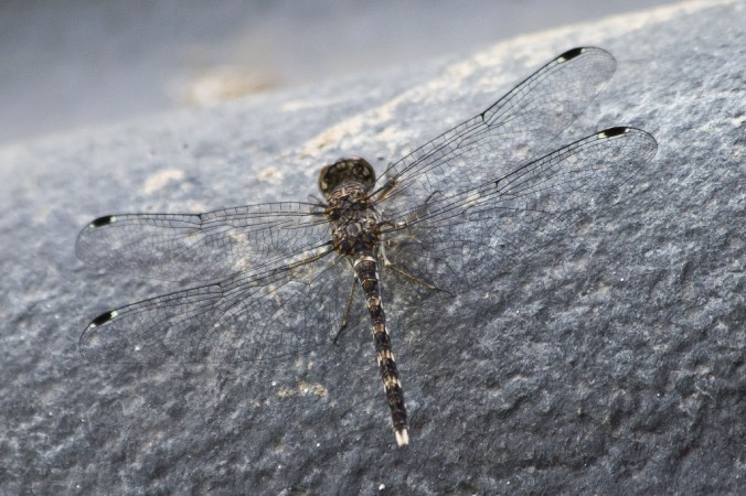 As the monsoons blow through Kerala, the native dragonfly and damselfly populations in the area appear to wax and wane along with the water levels. A sunny day by any water body guarantees sighting at least one species, but as is only so common during the season, overcast days dominate the calendar. Nevertheless, Kerala’s entomological biodiversity remains as strong as the summers, during which dozens of Odonate species whizz back and forth teritorially over their little stretch of pond-shore or riverbank. The main reason that these insects are not out in force as frequently as the rest of the year is that they are most active in hot and dry climates, particularly in direct sunlight. Contrarily, monsoons traditionally offer respite to natives, being wet and (slightly) cooling. When they’re not visibly hunting or mating, dragonfly and damselfly populations are probably strongest in the larval stage – extraordinarily aggressive aquatic predators. I got lucky a few days ago on a sunny day on the backwaters when I saw a Granite Ghost – in my books a rarer species of dragonfly that I’ve only sighted once in Goa.