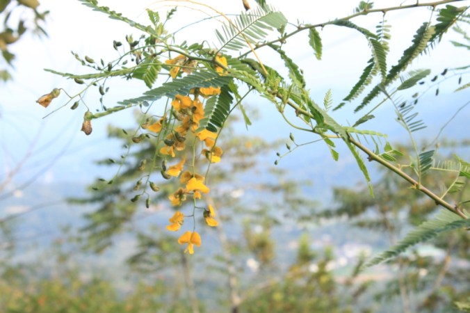 Sensitive Smithia is a low growing shrub found in and around the Western Ghats up to 1200 meters above sea level. It is flourishes along the roads as the monsoon trails off. The leaves are slightly sensitive to the touch, hence the name. The plant is enjoyed in multiple ways; bees feed off the the nectar of the flowers and people cook and eat the leaves and shoots as well as using other parts for Ayurvedic medicine.