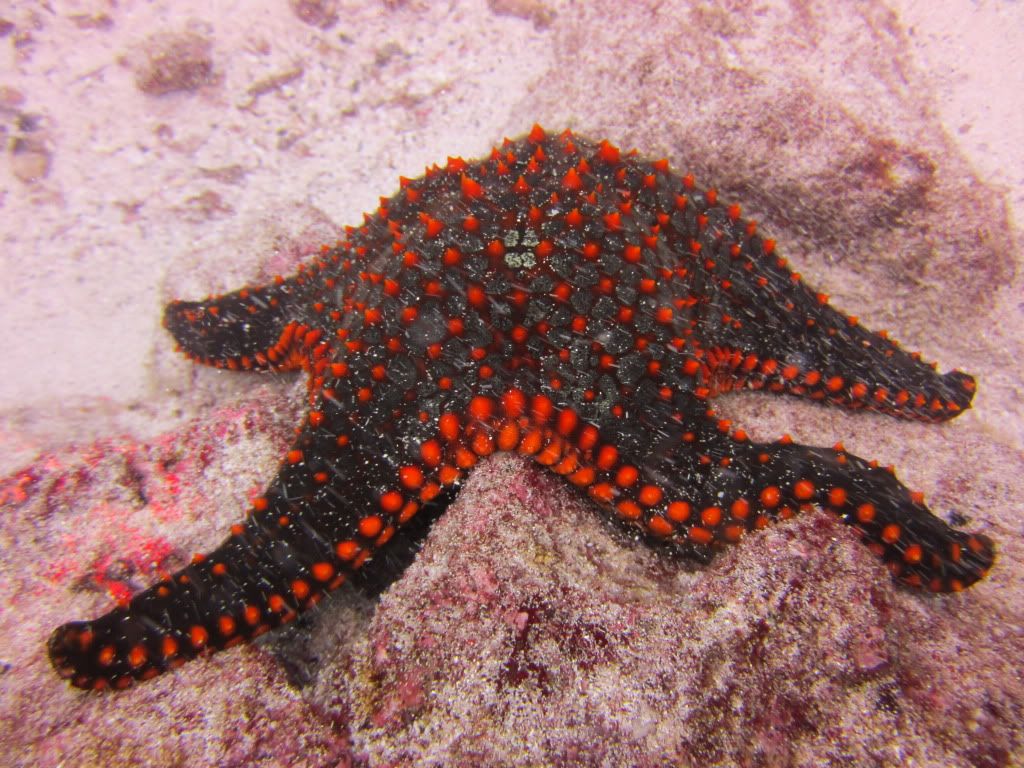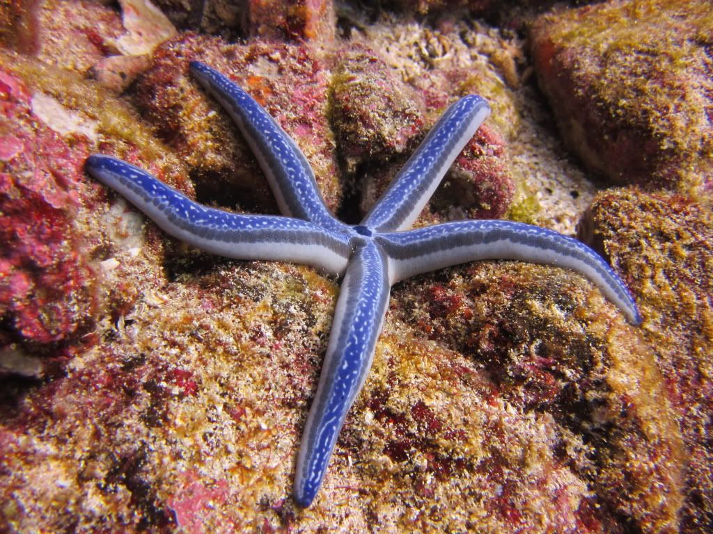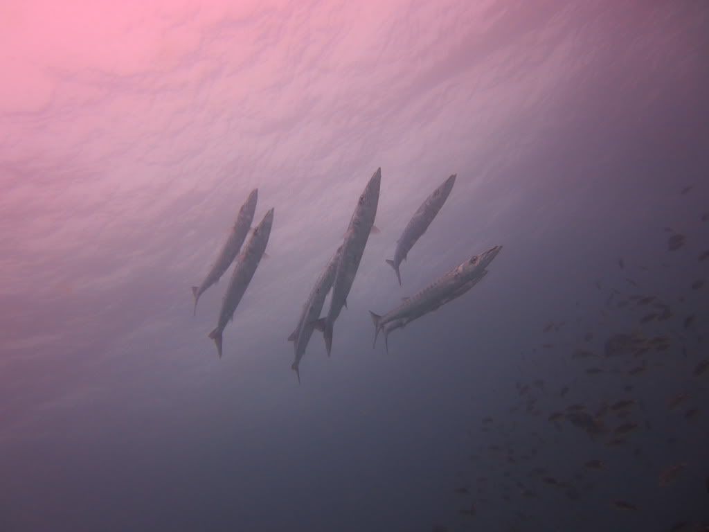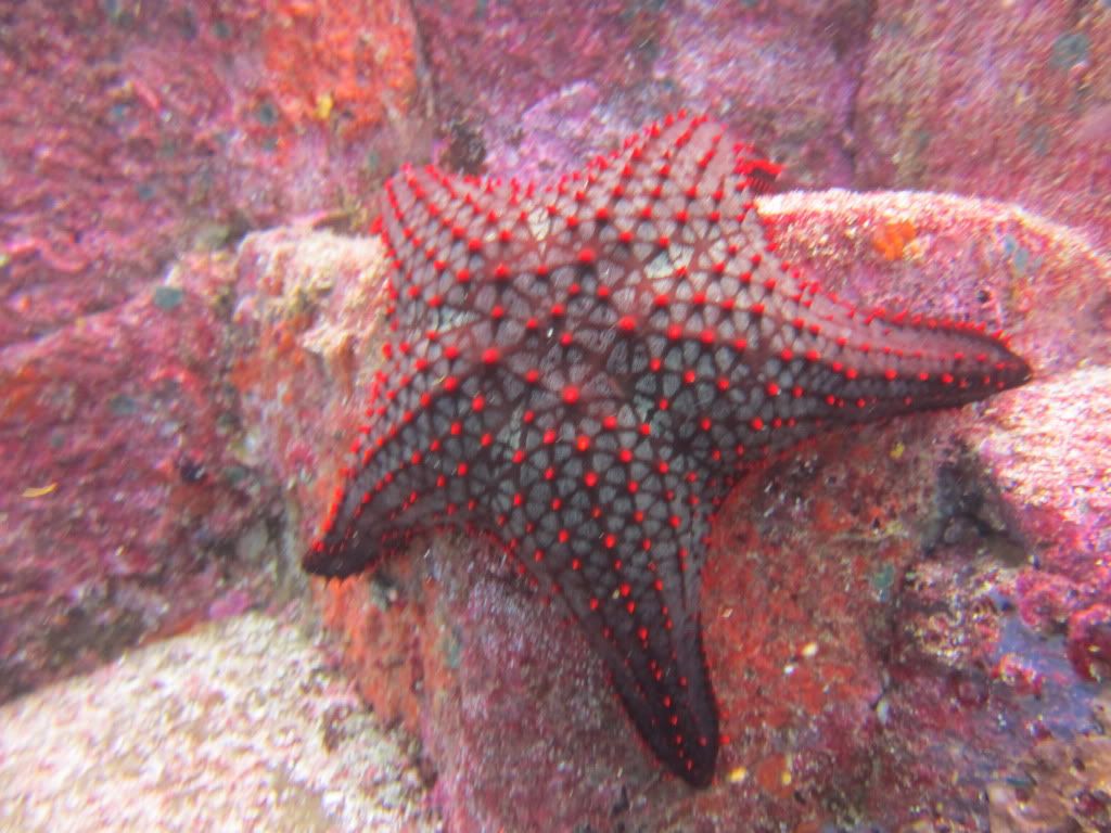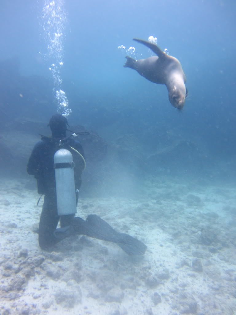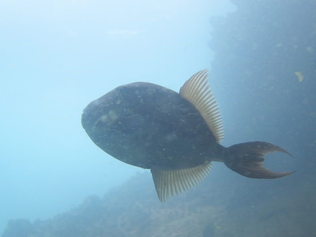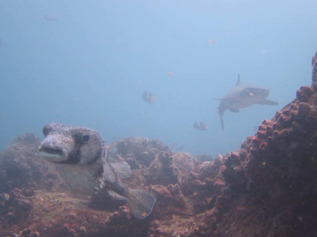 reached the particular island, we’d either do a check-up in shallower waters or go straight into the dive plan. This briefing basically involved a guide holding up a board with a map and simple topographical diagram of the area, and describing what direction and depths we’d go in. He’d also mention what wildlife we’d look out for and explain the hand signals for these animals. Then we’d all sit on the sides of the boat, get our gear helped on, and fall backwards into the water. At least one of the guides always had a camera in an underwater case, and the photos and videos, as you may have seen so far, were very much worth having. With over thirty species of bony fish (and that doesn’t even account for those I accidentally forgot), seven species of cartilaginous fish—four sharks and three rays—Galápagos Sea Lions, several sea stars, and Green Sea Turtles seen over the course of six dives, the biodiversity and sheer size of fish schools was quite impressive. Considering that my last dive had been for certification in Croatia, under the relatively dull Adriatic Sea in poor visibility, I got very spoiled by these dives.