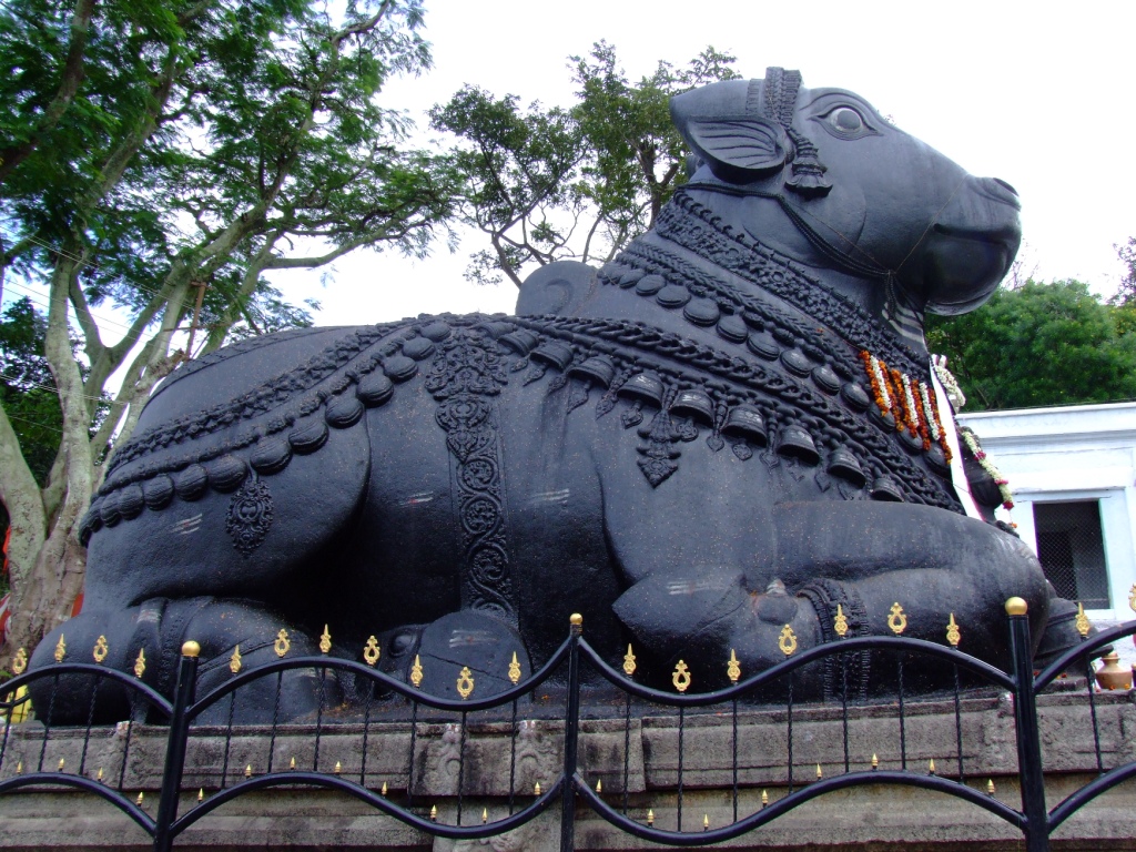 The colossal bull is located in the Chamundi Hills very close to Mysore and nearby Chamundeswari, the temple that sits high above the city reached by 1000 steps.