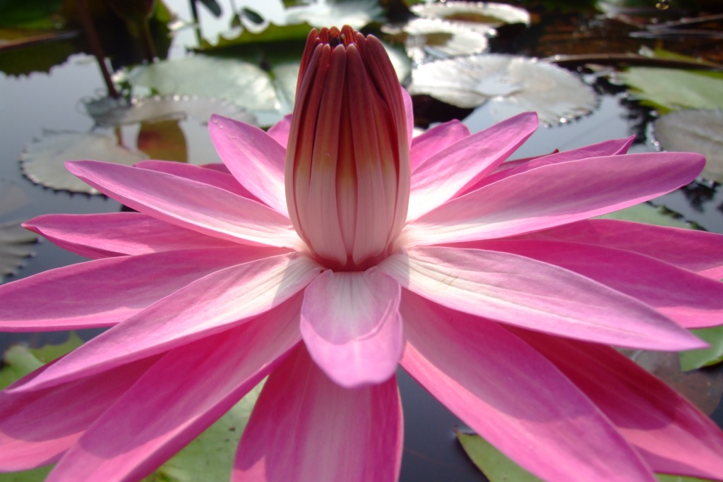 Native to India and common in Kerala, Pink Water Lily is mostly seen growing in the fresh water ponds and back waters. The round floating leaves are a perfect backdrop for fragrant flowers are fragrant that open throughout the day and close at night.