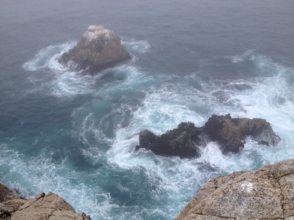 We ended up taking the McClures Beach trail, an easy three-quarter mile hike to the beach. As we lost elevation on the gently sloping trail, we left behind the fog, revealed to be low-lying clouds hanging a few hundred feet over the coastline. McClures beach is one of the roughest patches of water on the Point; the surf is incredibly strong, and harbors sleeper waves, rip currents, undertows, hidden rocks, and many other hazards. Shortly after arriving we saw a sea lion bowling through the water, but it quickly disappeared, not to be seen again. We perked up when we saw jagged rocks jutting into the air farther down the coast. These looked intriguing, so we walked about a mile up the coast to investigate them. There turned out to be dozens of incredible rock scrambles up the slopes; the sharp promontories provided an awesome view of the ocean’s incredible power. Waves pounded against the sharp rocks and up the steep channels, throwing white foam and blue spray ten or fifteen feet into the air. The boiling white water looked completely unmanageable, booming and surging against the pitted rock surfaces. Small, sheltered pools of water looked like they might prove to be incredible tidal biomes, but we couldn’t find an easy way down to investigate them without risking our necks. Assuredly, a fall from the top of the rocks would mean death. We were all cautious, and after thoroughly exploring the amazing environment, we hoofed it back to the car. Unfortunately, we hadn’t found any suitable campgrounds; the beach was far too wooly and, in any case, off limits to camping. See a few more McClures Beach photos here and here.