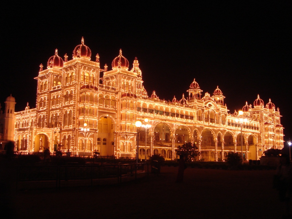 Located in the heart of Mysore City, Mysore Palace is one of the biggest and most spectacular palaces in the country. The original palace was built by the Wodeyar Kings during 14th century. The wooden structure was demolished and reconstructed many times over the centuries. The current palace, commissioned in 1897, is built in the Indo-Saracenic style, blended with Hindu, Muslim, Rajput and Gothic styles of architecture with stained glass, chandeliers and elaborate grill work imported from all around Europe.