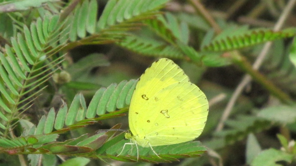 The Common Grass Yellow butterfly is one of the most common and abundant butterflies in India recognizable by its bright lemon yellow wings with black bordering on the upper side and brown markings on the lower side. The females are larger than males. These butterflies are found flying close to the ground along grassy patches.Cassia fistula, Cassia lora, Albizzia, Cassia alata, Cassia sothera and Cassia mimosoides are the favorite food plants for this species.