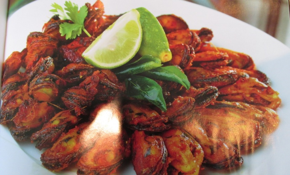 Mussels are abundantly found on the sea shores of Kerala especially the Malabar coast. The hard shell is removed and the mussels are cleaned well before cooking.