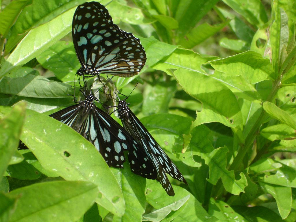 The Blue Tiger is one of the butterflies found commonly throughout most of India, both in the hills and in the plains. These butterflies are frequent visitors to gardens and the Pink Cockscomb (Ageratum conyzoides) is its favorite flower.