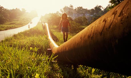 Pipe dreams: the 500km pipeline that transports oil from Lago Agrio to the port of Esmeraldas, on the Pacific Coast. The oil discovery destroyed the area. Photograph: Remi Benali/Corbis