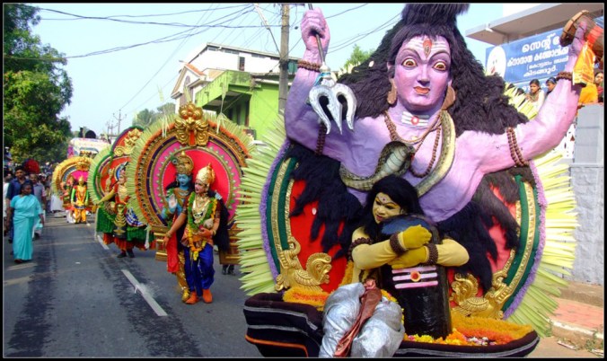 The Goddess Parvathi herself plays a role in the story by grabbing Shiva’s neck to prevent the poison from spreading throughout the world, which turned Shiva’s neck blue. It is also believed that on this day Lord Shiva married the Parvathi again. The Shiva Temple on the banks of the Periyar River, near Cochi attracts a huge number of devotees across the state.