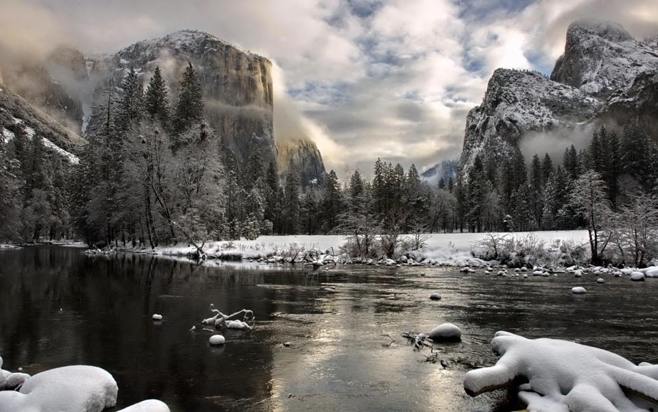 Sunrise over the Merced River after a winter snowstorm, Yosemite National Park, California. Photo by Flickr/Getty Images