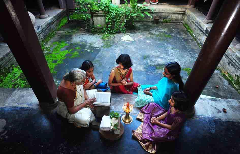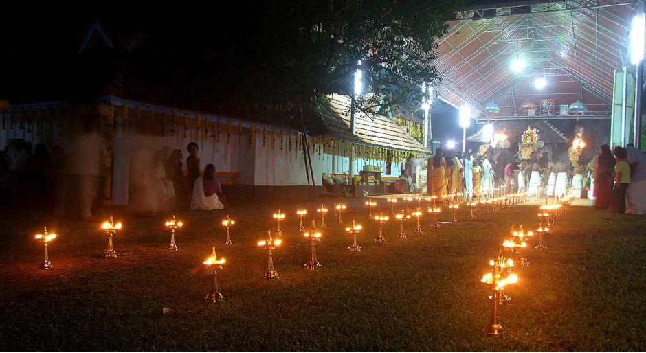 The Nilavilakku is an integral part of the rituals and ceremonies in most Kerala homes. Lighting the Nilavilakku on certain occasions is considered auspicious, especially within the Hindu community and at places of worship. As dusk sets in, young girls in Hindu families bring the lighted lamps to the verandah of the house. In the flickering light of the nilavilakku children and family elders gather to chant hymns and evening prayers.